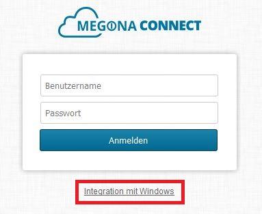 Login-Seite. Klicken Sie auf Integration mit Windows (rot markiert).